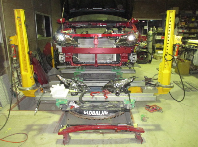 ミリ単位の調整が可能なジグフレーム修正機で、